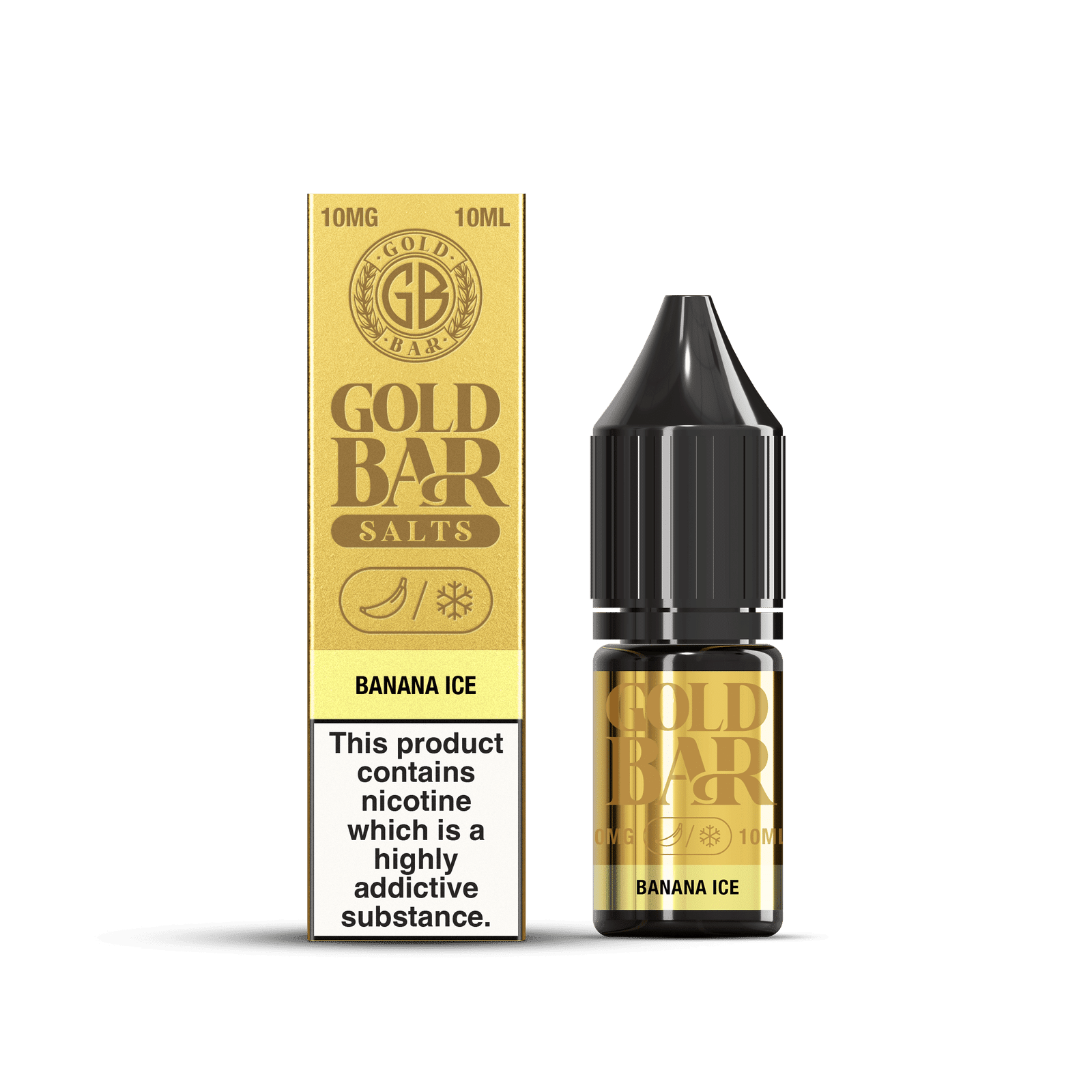 El líquido Banana Ice de Gold Bar Nic Salts captura el cremoso sabor a plátano con toque refrescante. ¡Te encantará!